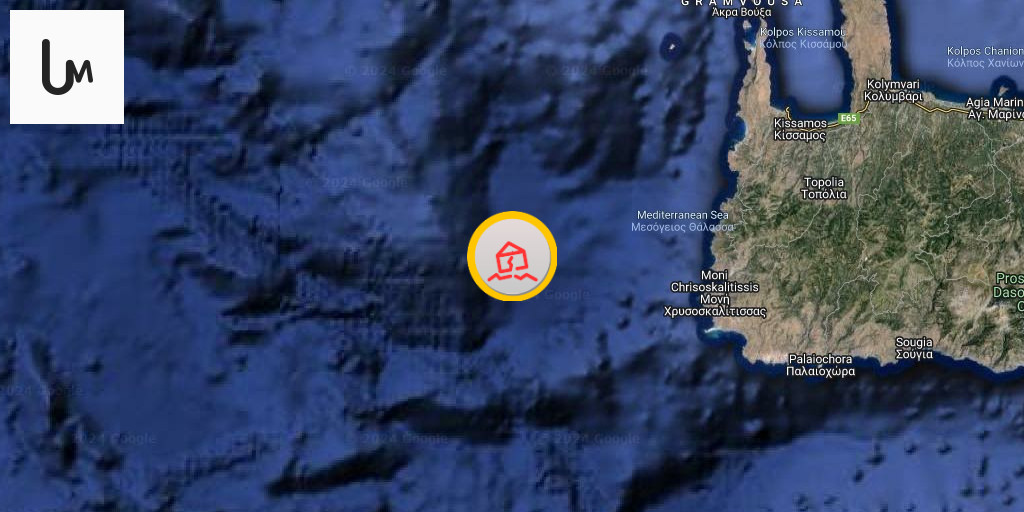 Earthquake of magnitude 4.9 - 39 km WSW of Kíssamos, Greece